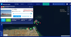 الباخرة “Sanmar Regent” ، تتبع دولة الهند وهي مختصة بنقل الغاز المنزلي (LPG)، وتبلغ قدرتها الاستيعابية 12423 مترًا مكعبًا من الغاز السائل (أي بحدود 13 ألف طن)، وفق ما تظهر بياناتها على مواقع التتبع العالمي للملاحة البحرية. و قامت هذه الباخرة بتحركات ملحوظة خلال الفترة المرصودة وفقًا لمواقع التتبع البحرية الدولية. حيث: