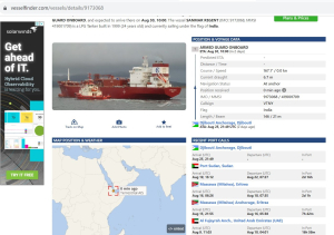 - تحركت الباخرة في تاريخ 10 أغسطس 2023 من ميناء الفجيرة بالإمارات.