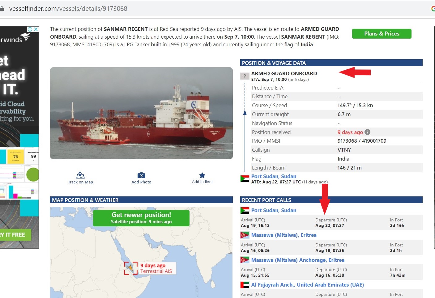 - وصلت الى ميناء بور سودان في يوم 19 أغسطس 2023 وبقيت فيه حتى تاريخ 22 أغسطس 2023.