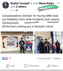 يأتي هذا التقرير للكشف عن حقائق خطيرة تتعلق بالفساد في مجال التعليم، والتي ظهرت وبشكل مفاجئ عبر صفحة الفيسبوك التابعة لشركة La Xenia International Institute of Switzerland، حيث تم الإعلان عن توقيع شراكة تعليمية مع الأكاديمية العربية للعلوم والتكنولوجيا والنقل البحري من خلال ذراعها التدريبي ACICT . واللافت أن هذا الكيان التعليمي “LaXenia” ليس سوى كيان وهمي.