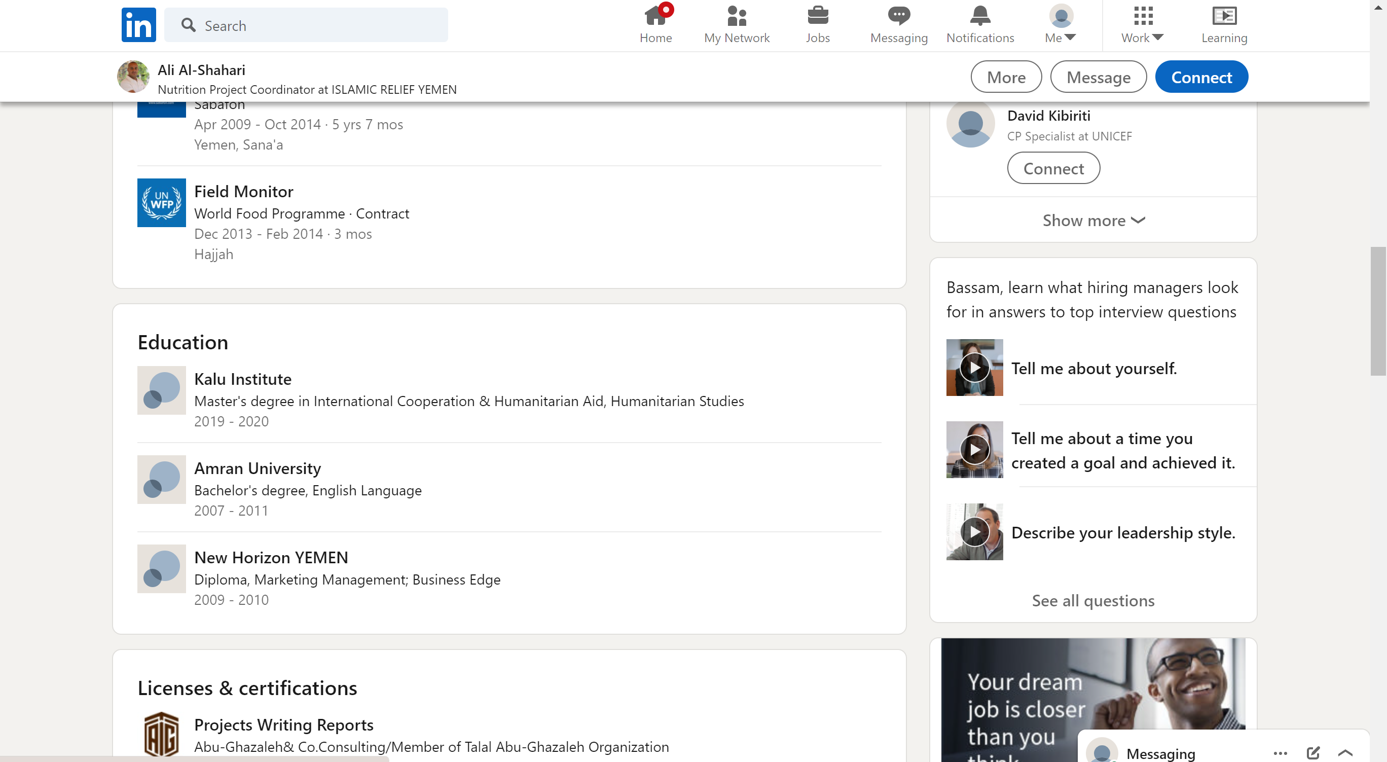 المنصب: منسق مشروع التغذية في منظمة الإغاثة الإسلامية.