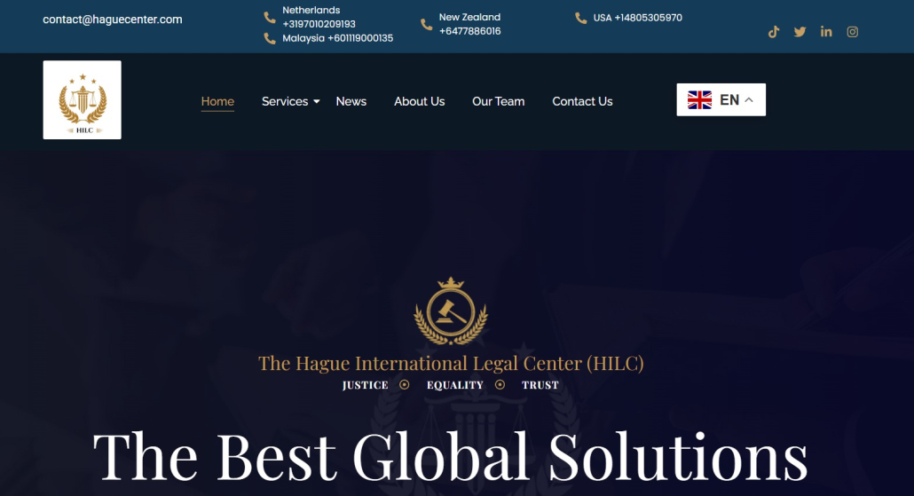 في ظل تزايد حالات الاحتيال باستخدام أسماء منظمات دولية ومؤسسات مرموقة، كشفت عملية بحث وتحقيق عن عدم وجود أي تسجيل رسمي أو قانوني لما يسمى “مركز لاهاي الدولي للحلول والاستشارات القانونية” (THE HAGUE INTERNATIONAL CENTER FOR LEGAL SOLUTIONS & CONSULTANCY) والذي يستخدم الرقم المرجعي HILC257C32185 في مراسلاته.