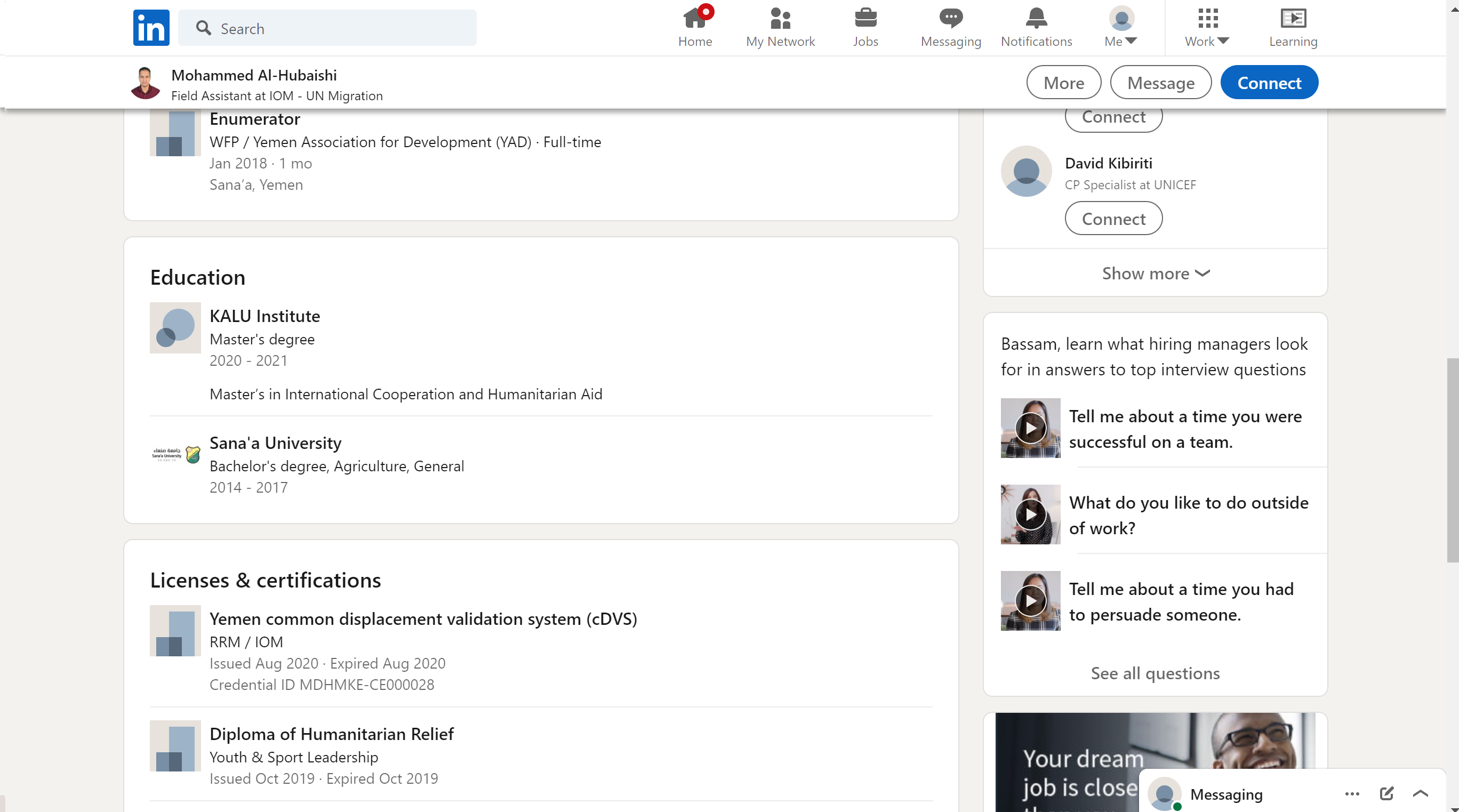 الوظيفة: مساعد ميداني في المنظمة الدولية للهجرة