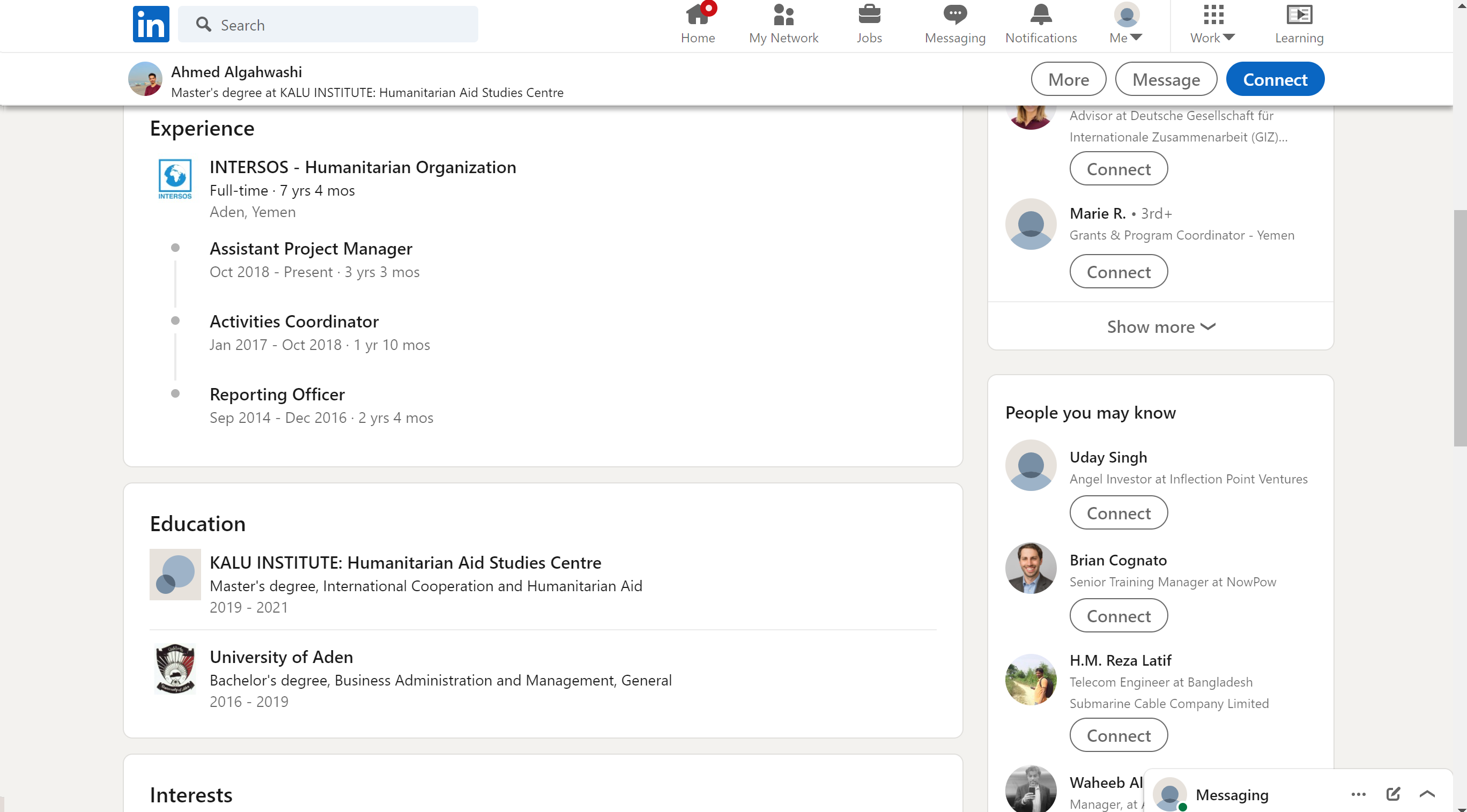 المنصب: يعمل في انترسوس – منظمة انسانية